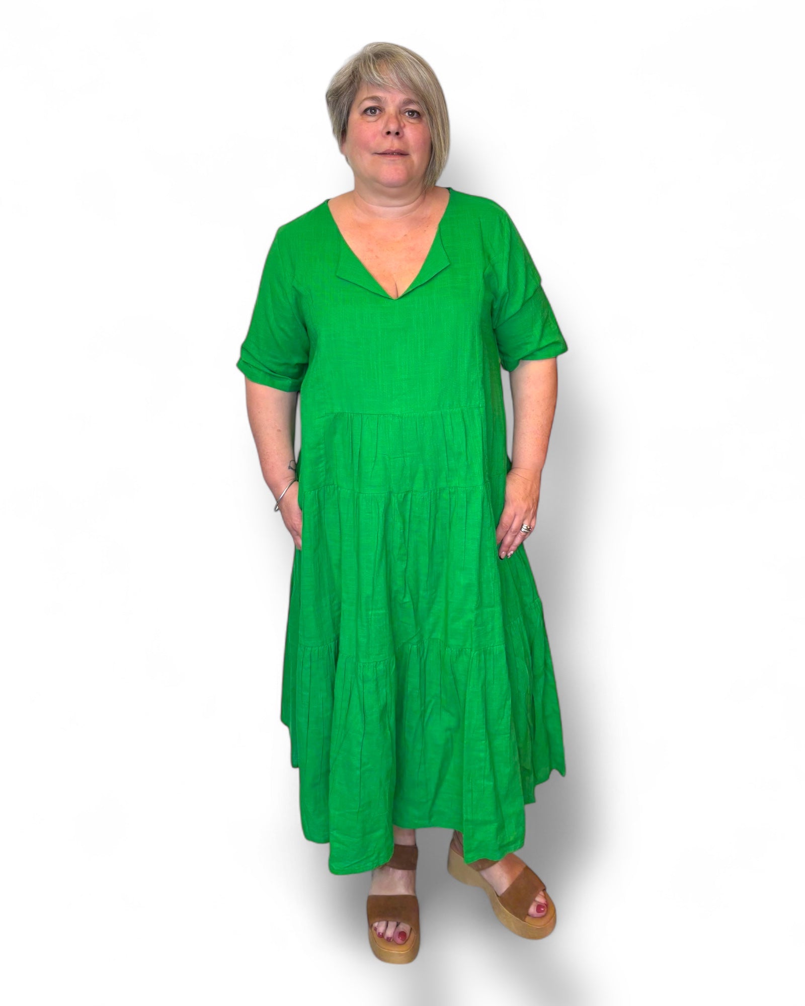 La robe Horizon est une pièce polyvalente qui allie confort et style. Fabriquée en 100% coton, elle est douce et respirante, parfaite pour les journées chaudes. Avec son décolleté en V et sa coupe fluide, cette robe offre une silhouette flatteuse. Disponibles en vert éclatant et en bleu marine classique, ces robes sont idéales pour toute occasion, que ce soit une sortie décontractée ou une réunion entre amis.